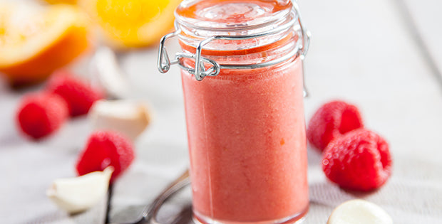 If you’re avoiding oil and vinegar, this oil-free salad dressing is made for you. Fresh raspberries mingle with orange juice while garlic and chili flakes heat things up. (If you’re fine with oil but still want the flavor, just add Vega® Omega Oil Blend).