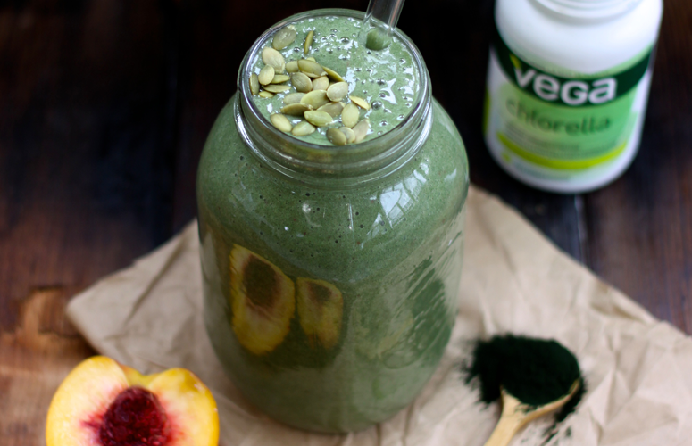 Blue and green are your new best friends. This simple smoothie has Vega® Chlorella and blueberries...