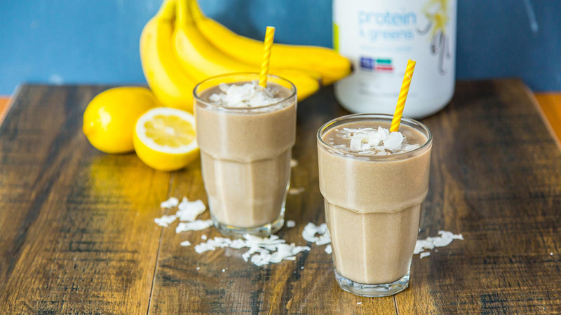 Your taste buds will love coconut and banana mixed in with your favorite plant-based protein powder....