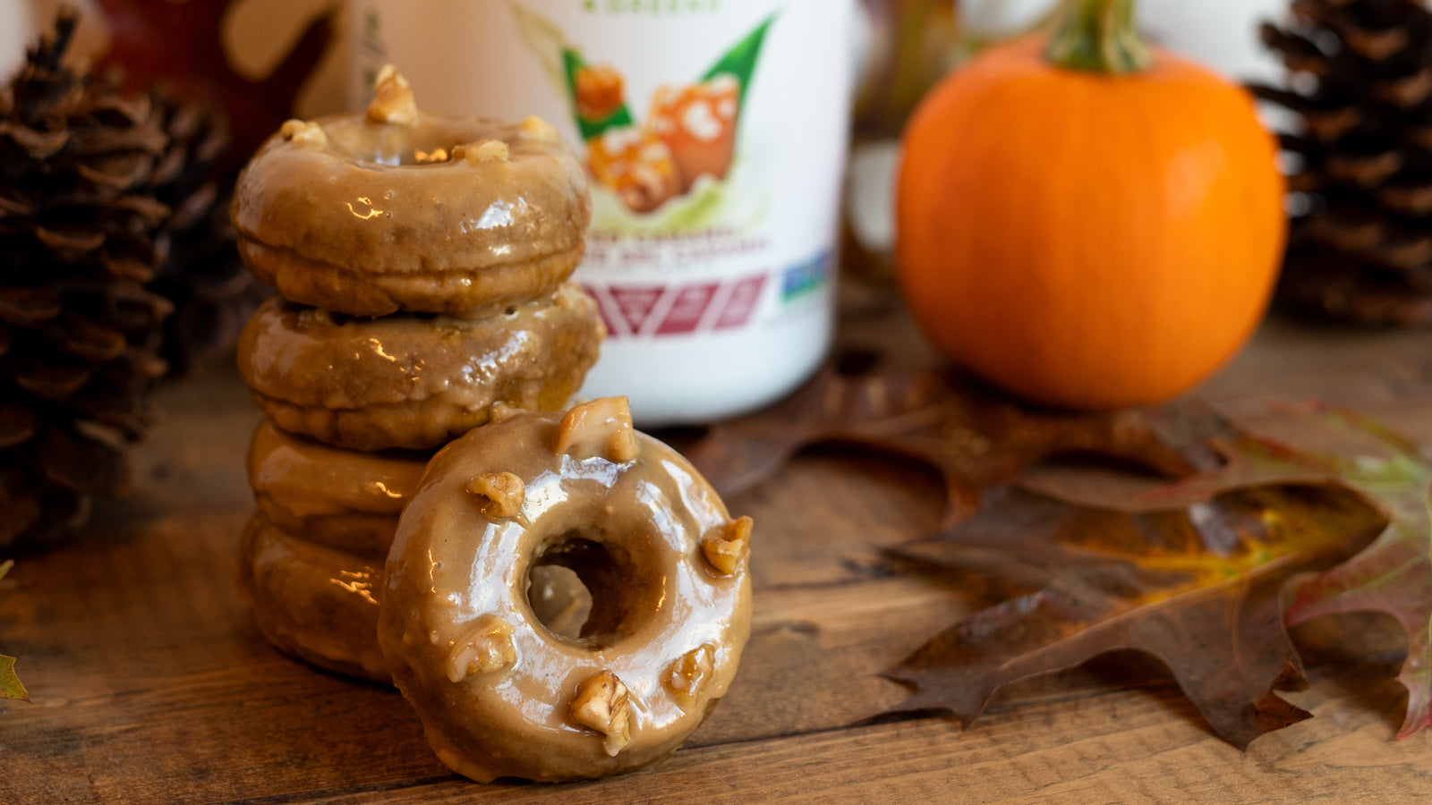 Grab a blanket, a cup of vegan PSL (Pumpkin Spice Latte), get comfy and embrace autumn to the fullest while these vegan pumpkin donuts bake in the oven. Imagine beautiful round pillows dipped into maple-syrup glaze – are a pumpkin-lovers dream.